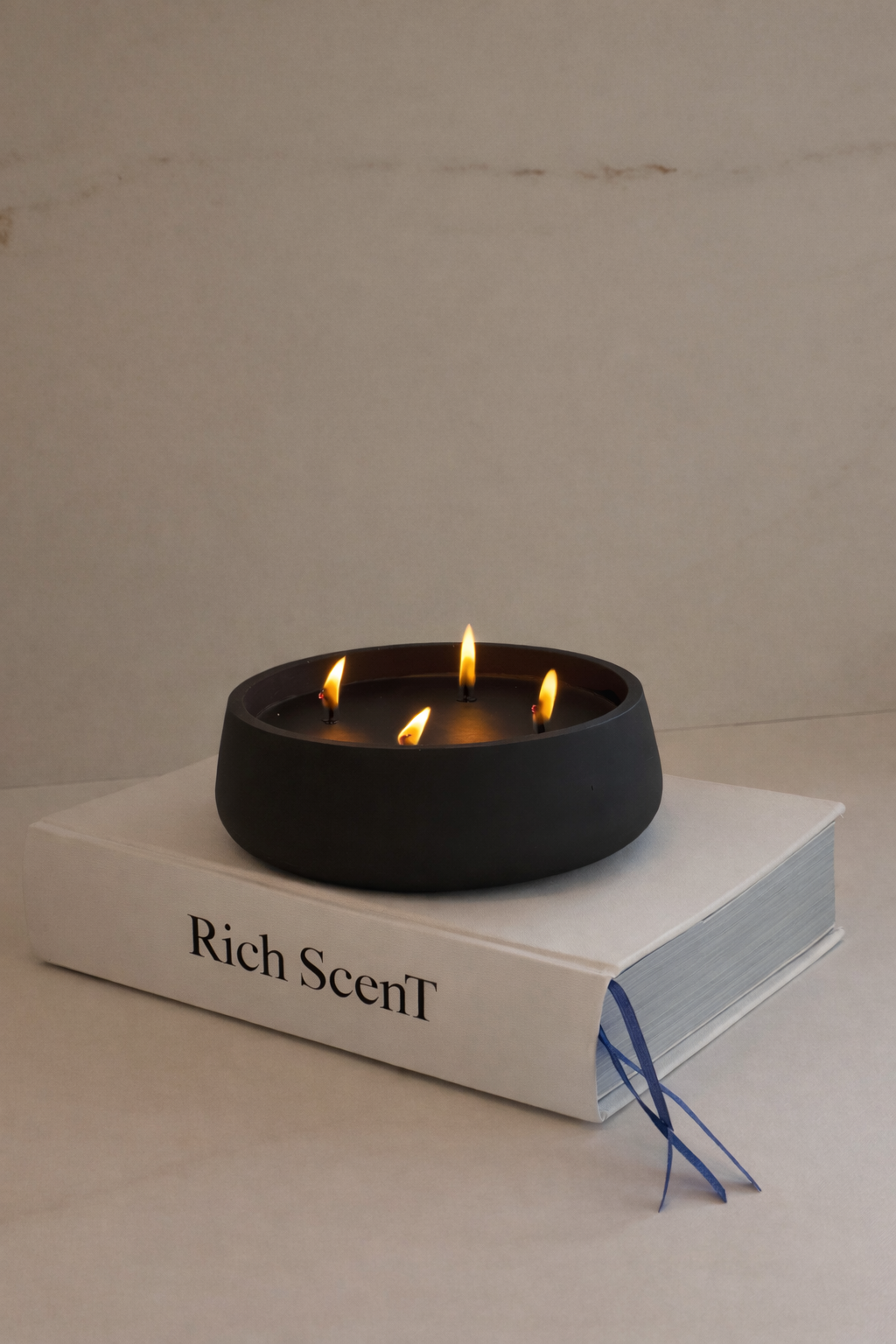 נר בטון שחור עם שעווה שחורה
