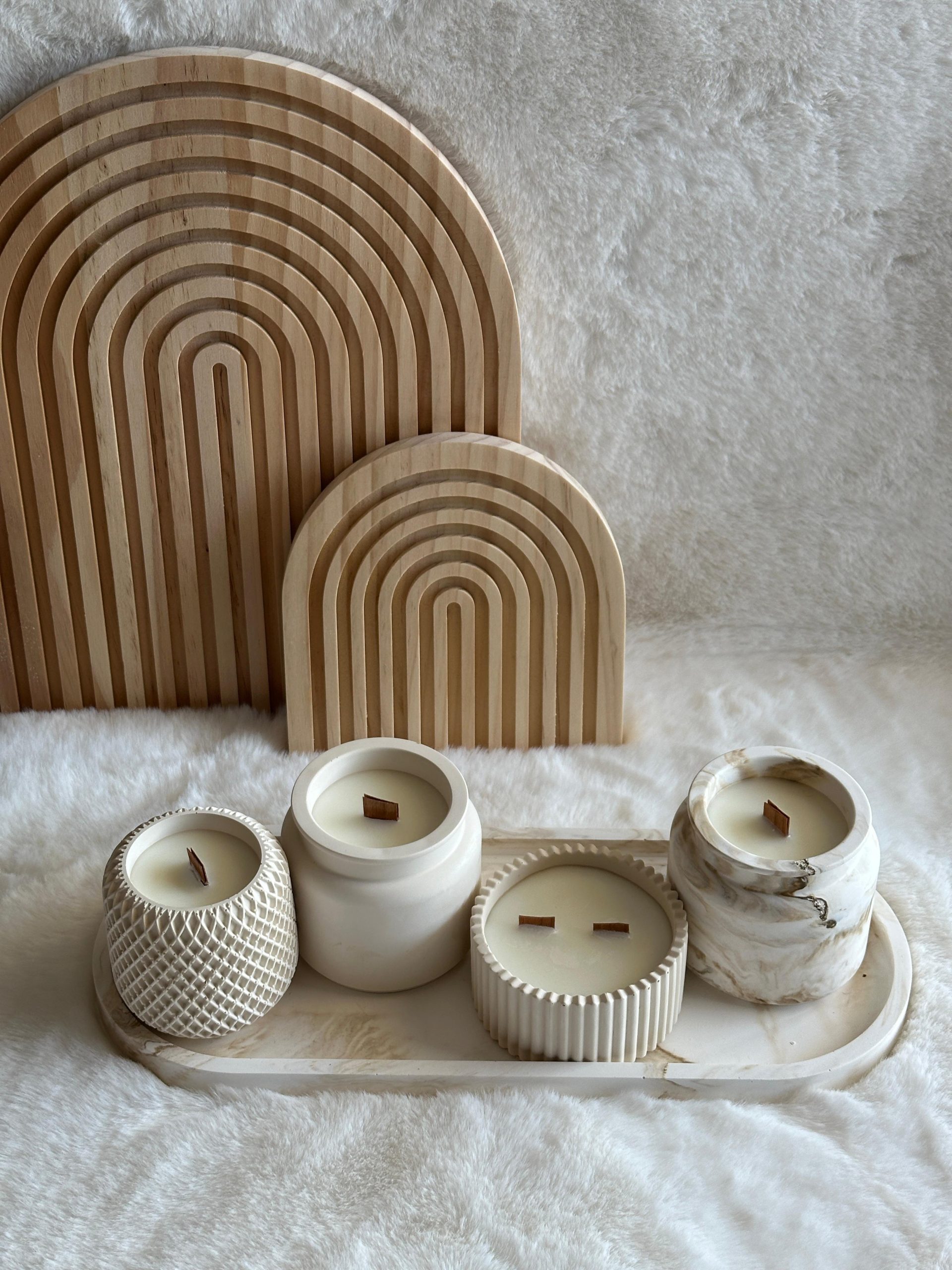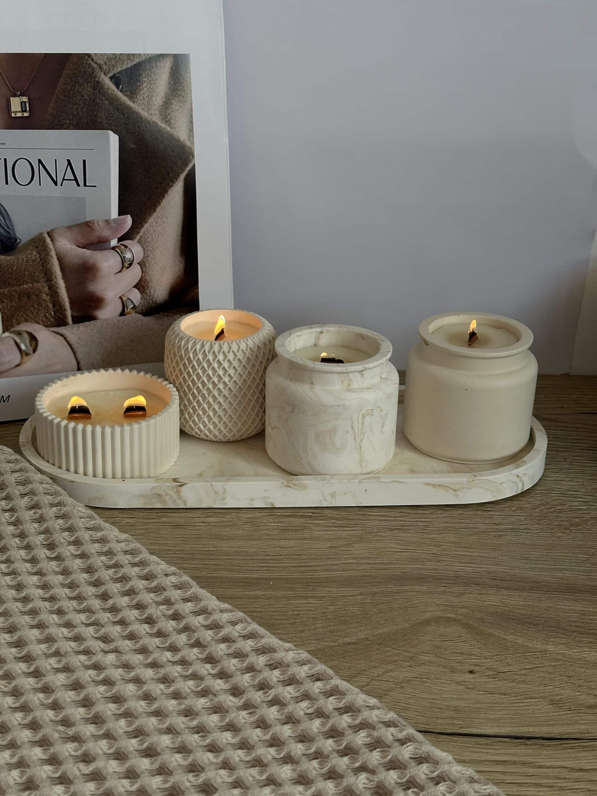 העניקו לעצמכם או לאהובים שלכם מתנה ייחודית ויוקרתית עם המארז המדהים שלנו הכולל ארבעה נרות מעוצבים בעבודת יד, המונחים על מגש גדול ומרשים. כל נר עשוי מבטון ומתערובת שעוות טבעיות איכותיות על בסיס שעוות סויה ללא פראפין והם מגיעים בצבעים אלגנטיים של שמנת, קרם וחום, המשלבים תחכום ורוגע בכל חלל.
