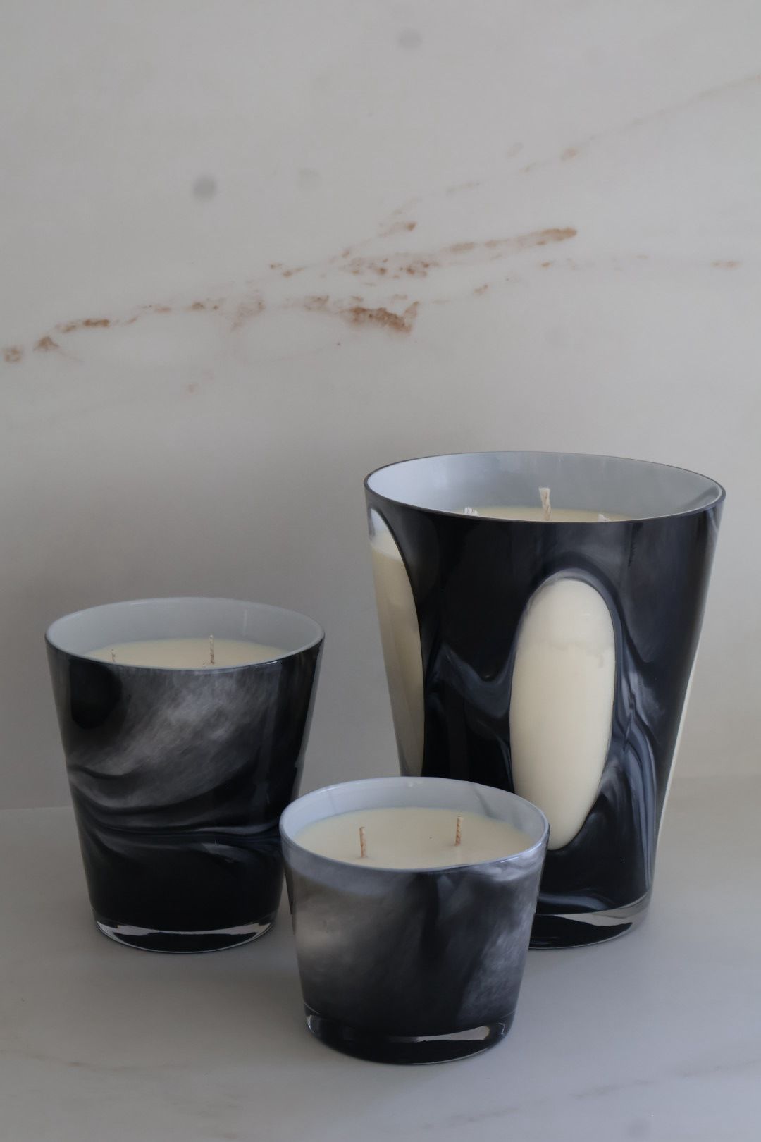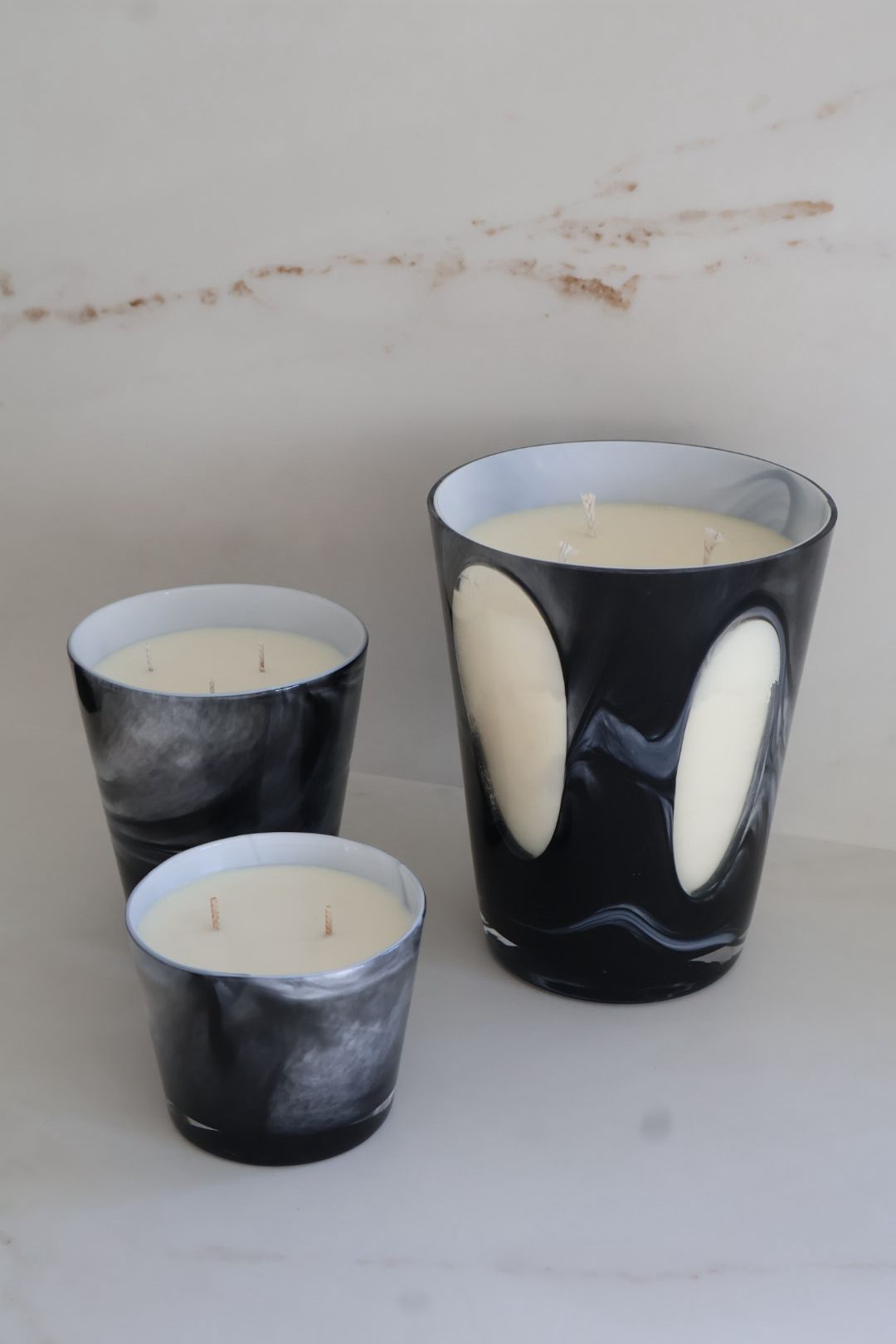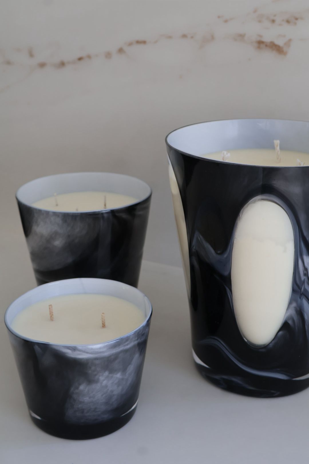 הנר מגיע בכלי זכוכית בעיצוב שחור-לבן מינימליסטי אך בולט, שמשתלב בקלות בכל חלל – סלון, חדר שינה, או משרד.