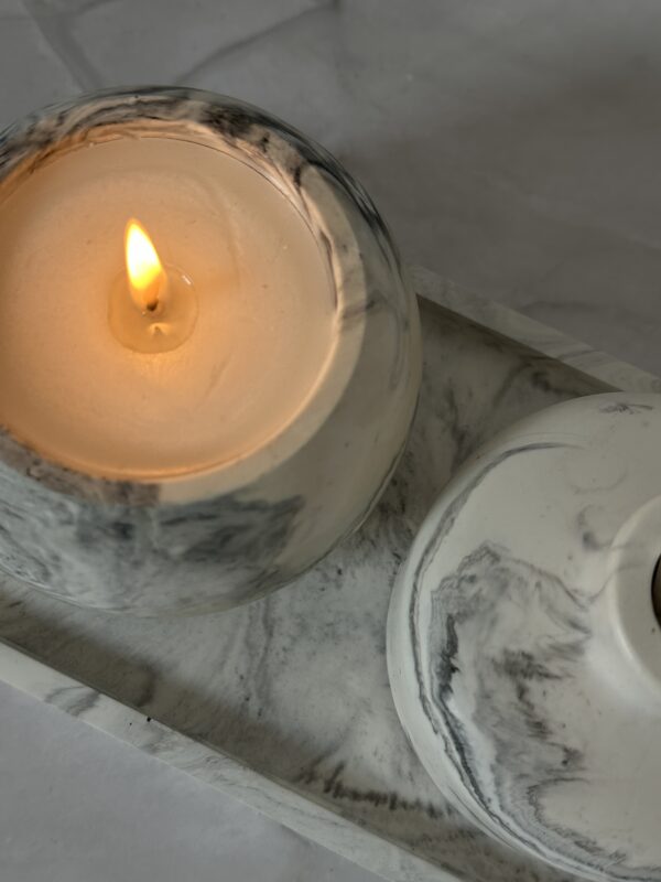 תנו למרחב שלכם מגע של אלגנטיות עם מארז דיימונד הייחודי שלנו הכולל אגרטל, נר ומגש ייחודיים בעבודת יד. שלושת הפריטים עשויים מבטון איכותי בצבע לבן עם נגיעות אפור ושחור ומשלבים עיצוב מודרני עם חמימות טבעית.