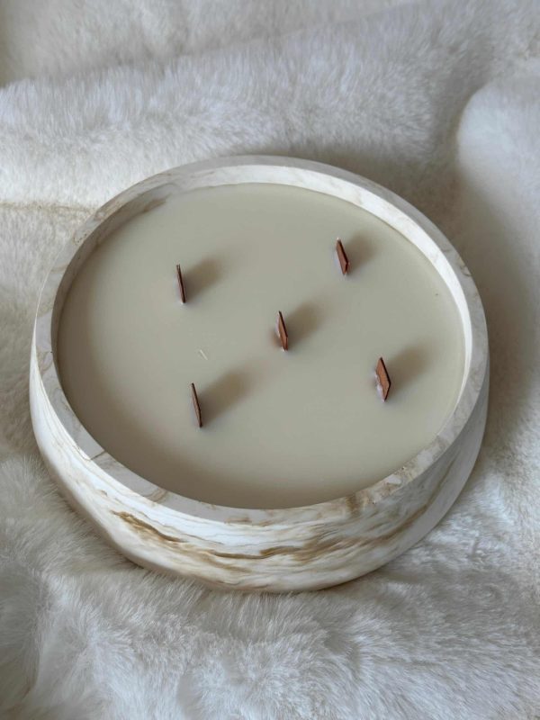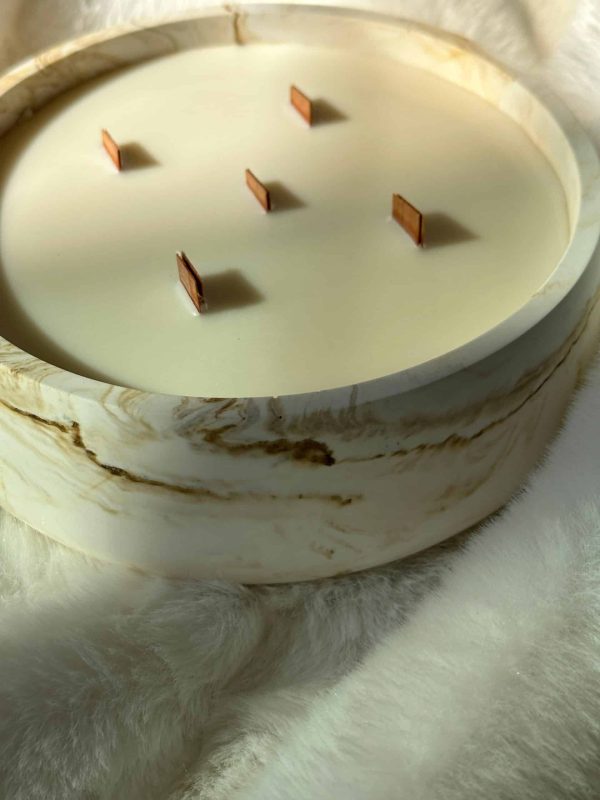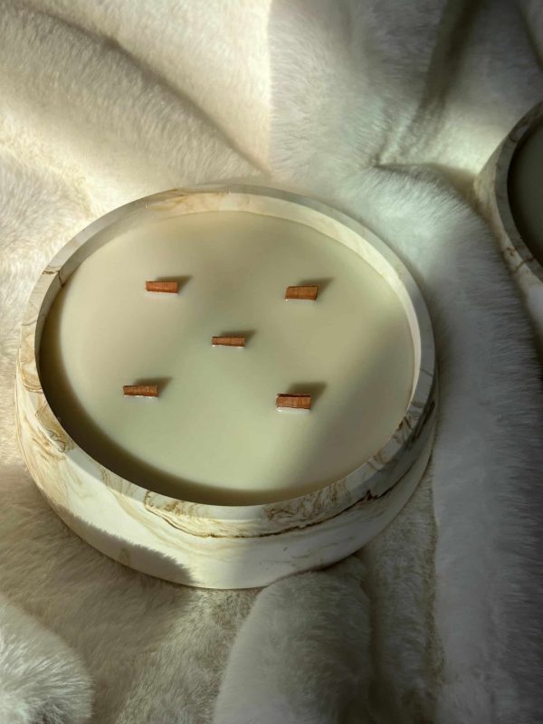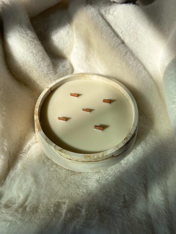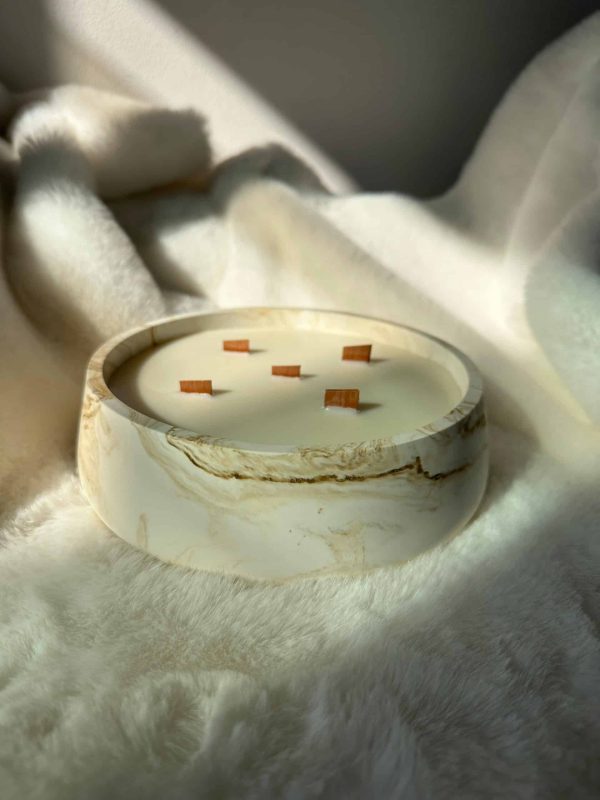 נר שמגיע בתוך כלי ייחודי בצבע לבן עם נגיעות של שמנת חום, משדר מראה חם ומודרני במקביל והופך כל חלל לאלגנטי ומזמין.