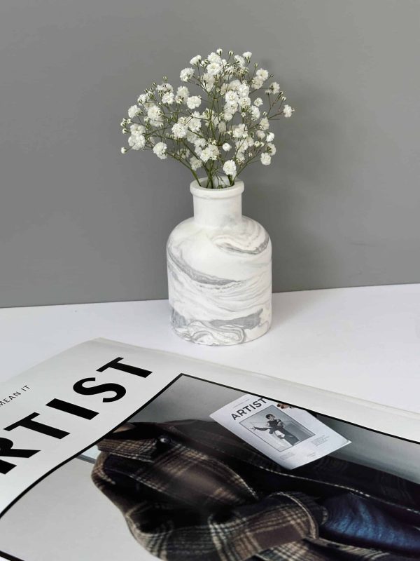 אגרטל עשוי מבטון בעבודת יד בצבע לבן ואפור