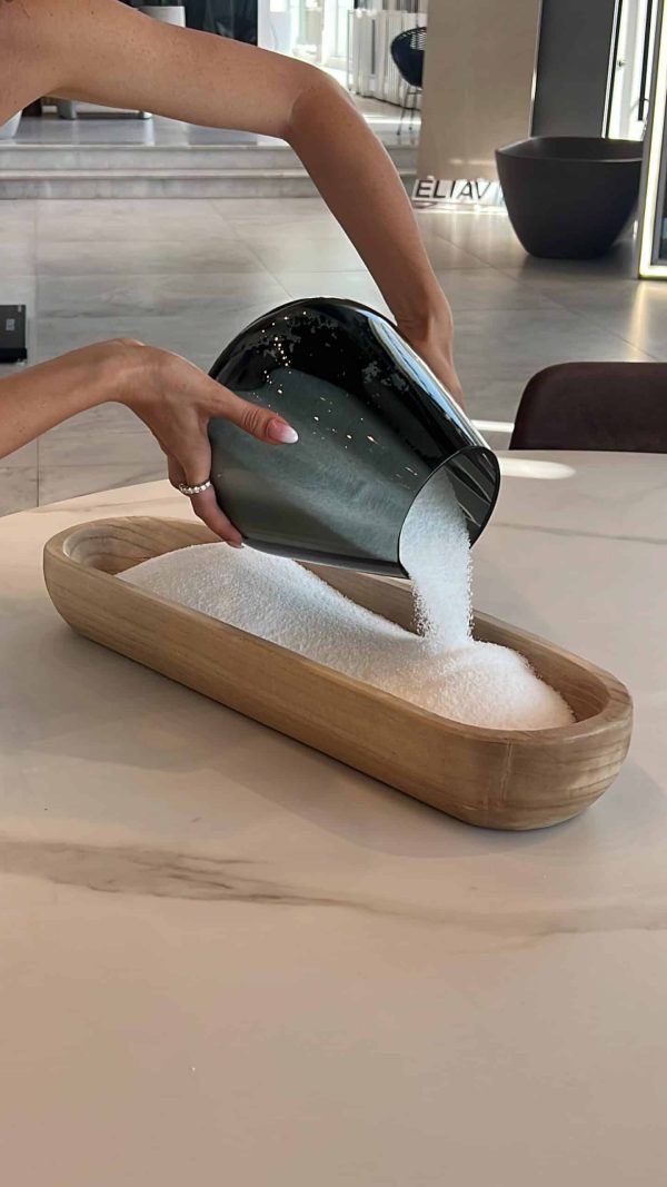 2. שפכו את פניני השעווה עד לגובה הרצוי וודאו שהיא מפוזרת באופן אחיד.