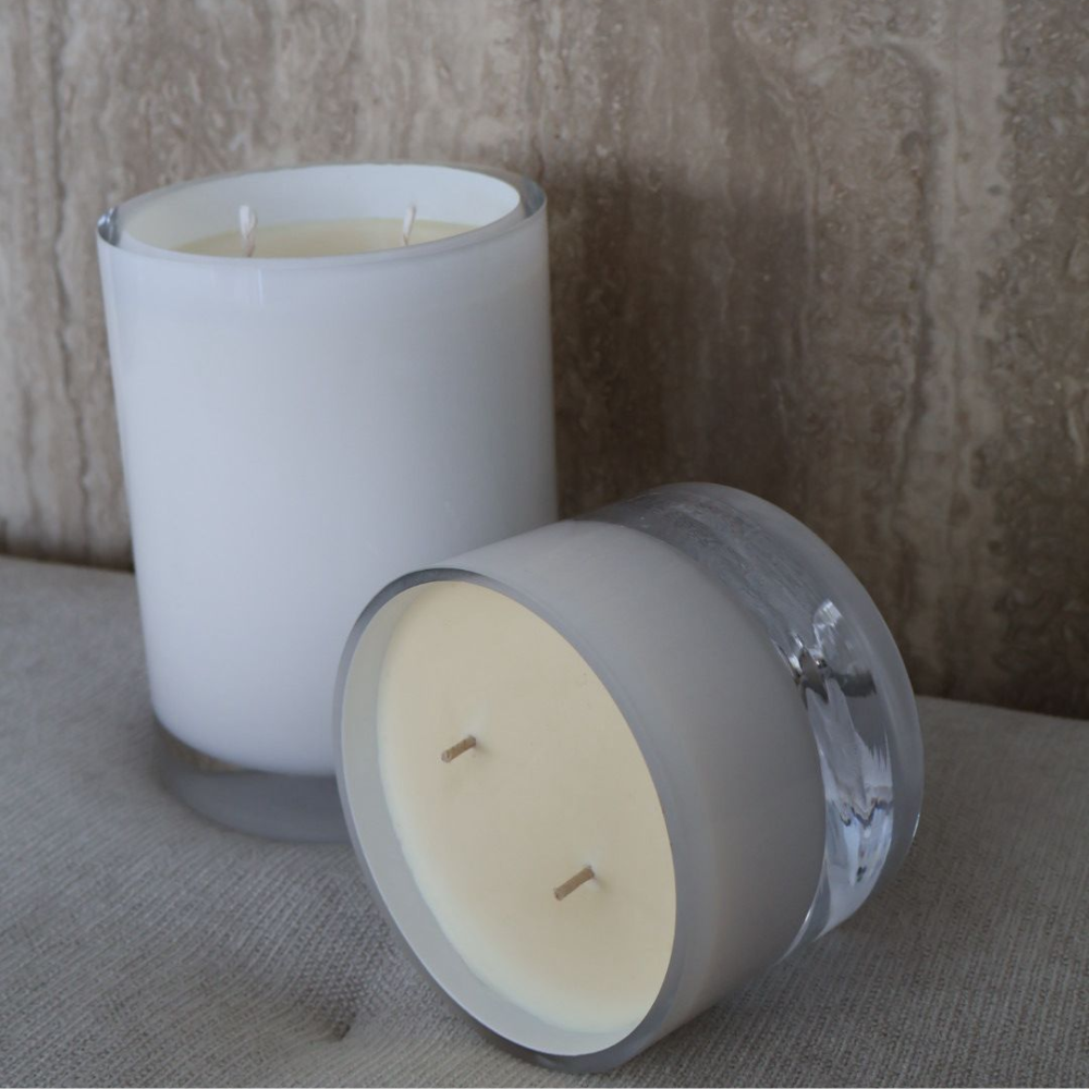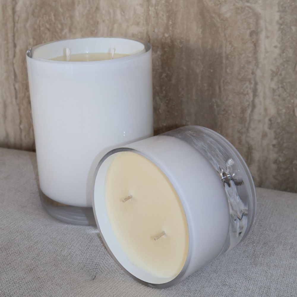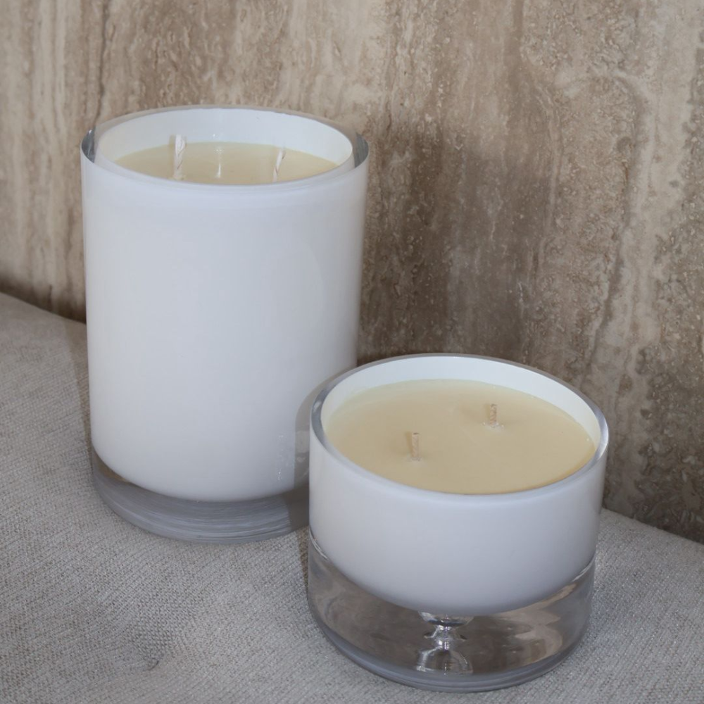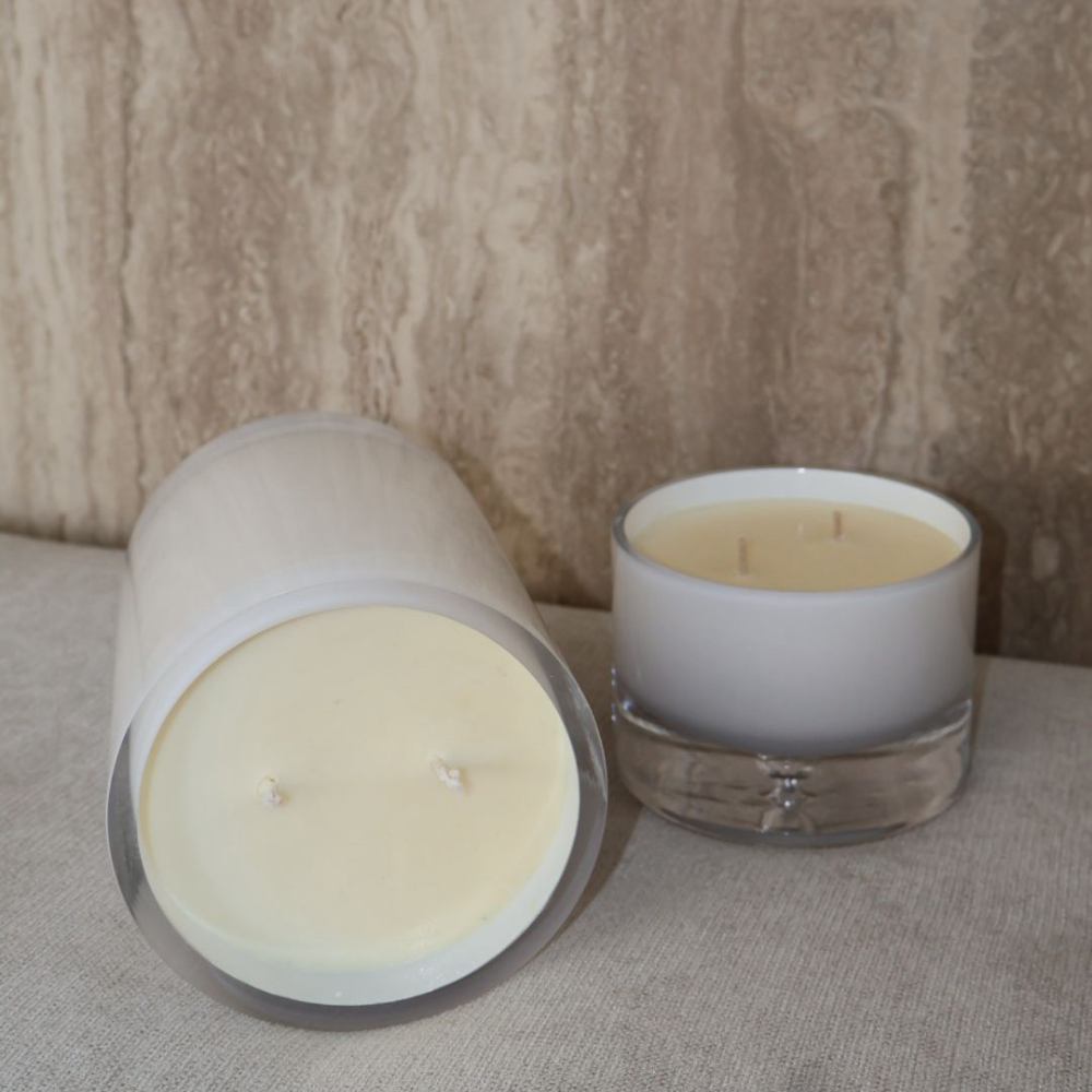 עניקו לחלל שלכם שילוב של עיצוב יוקרתי וניחוח מותאם אישית עם נר מון, נר לבן המעוצב בקפידה בכלי זכוכית ייחודי בעבודת יד.
