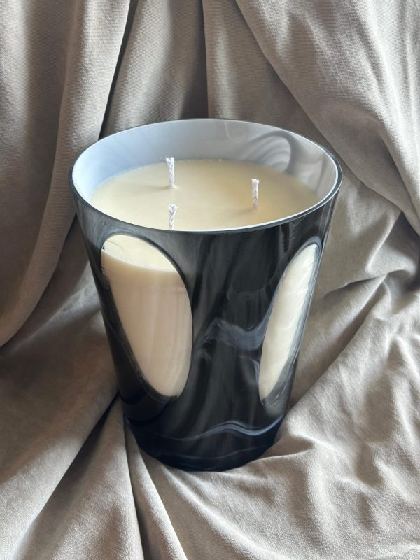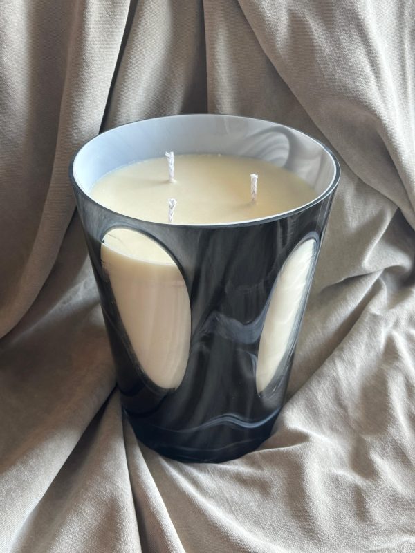 הכניסו לחלל שלכם אלגנטיות יוצאת דופן עם נר אמפייר, בעיצוב מרשים מזכוכית שחורה עם נגיעות לבן וחלונות זכוכית ייחודיים.