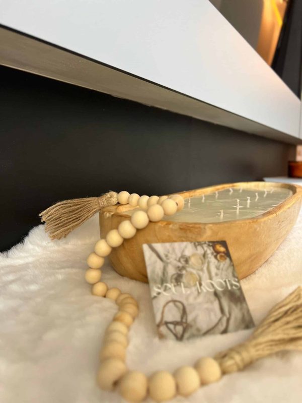 פריט דקורטיבי מושלם לכל חלל בבית. הנר מגיע בתוך כלי עץ טבעי, המוסיף חמימות ואווירה מרגיעה. הקישוט החרוזי והגדיל האופייניים לבוהו שיק מוסיפים נגיעה של עיצוב אתני ומיוחד.