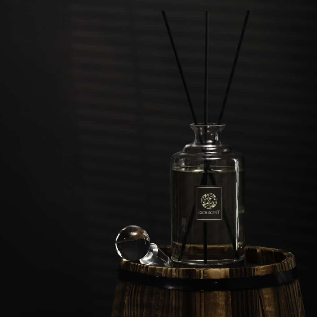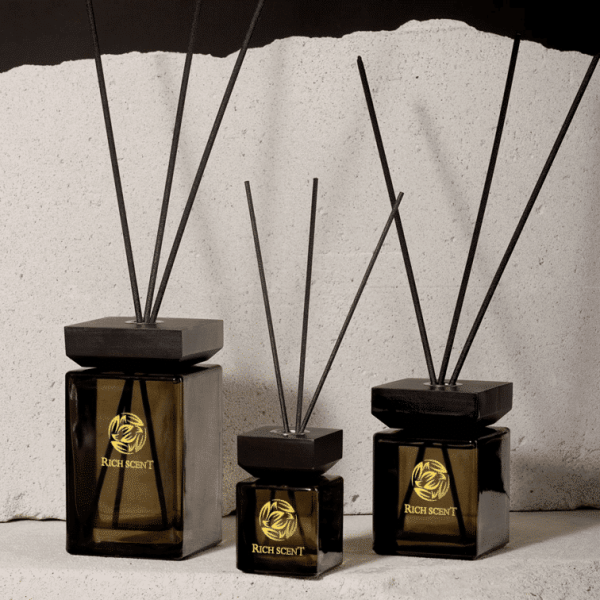 מפיצי הריח היוקרתיים שלנו עשויים מכלי זכוכית מושחרים עם מכסה עץ שחור יוקרתי ואלגנטי למראה עשיר ולהענקת יוקרה וסטייל לחלל בו הם מונחים